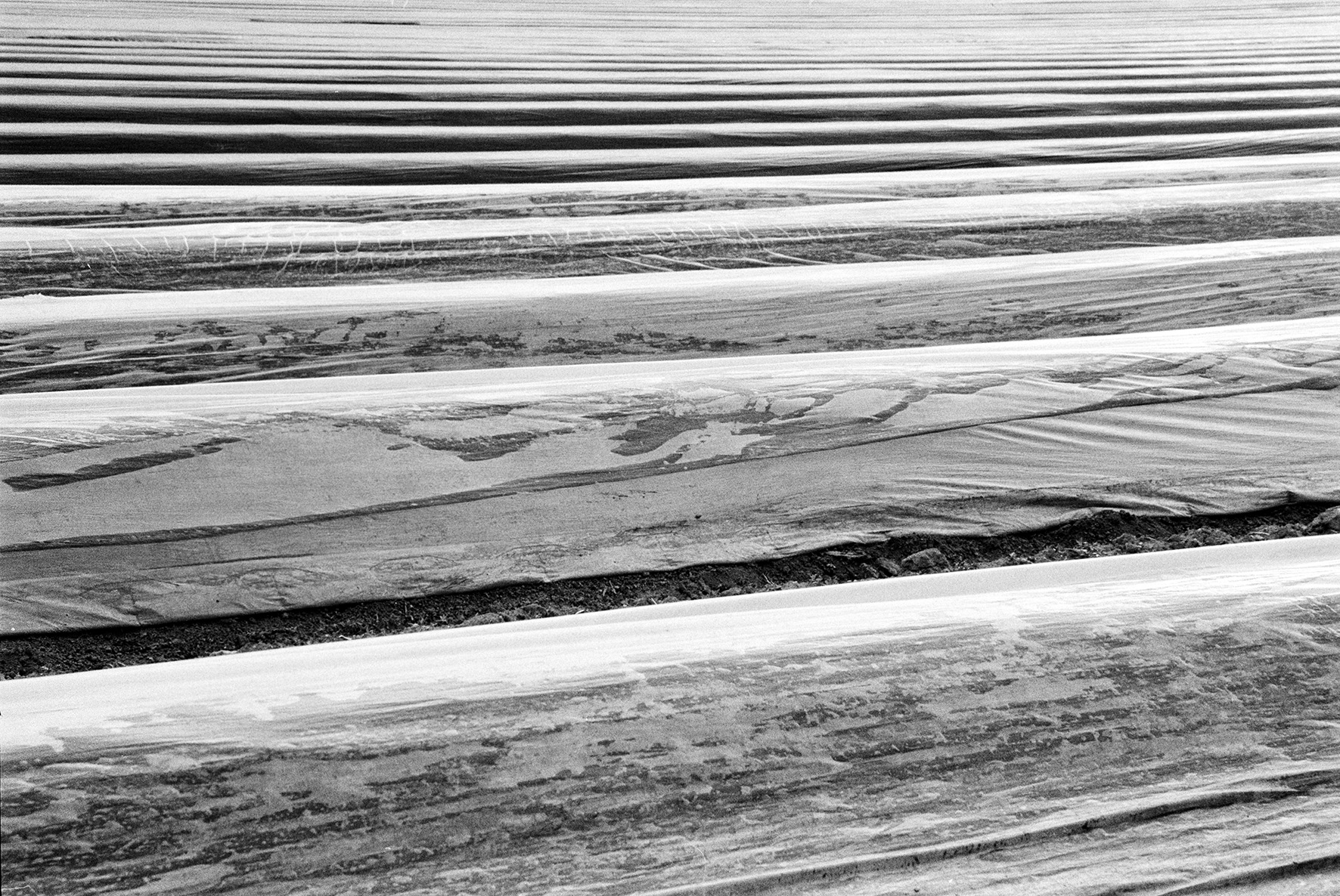 Présents au bord des routes, ces amas de récoltes agricoles se couvrent, les transforment en micro-paysages cycliques. Drapées, plissées ou tendues, ces toiles donnent naissance à des reliefs mouvants, travaillant leur dimension. La surface agricole se dédouble alors, entre fonction et fiction, elle devient montagne, draperie ou encore strate rocheuse, comme si les plis s’ouvraient soudain sur une géologie inédite.